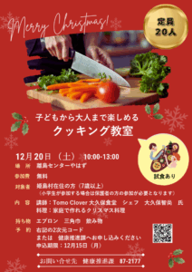 ご家庭で簡単に作れるクリスマス料理のクッキング教室を開催いたします。