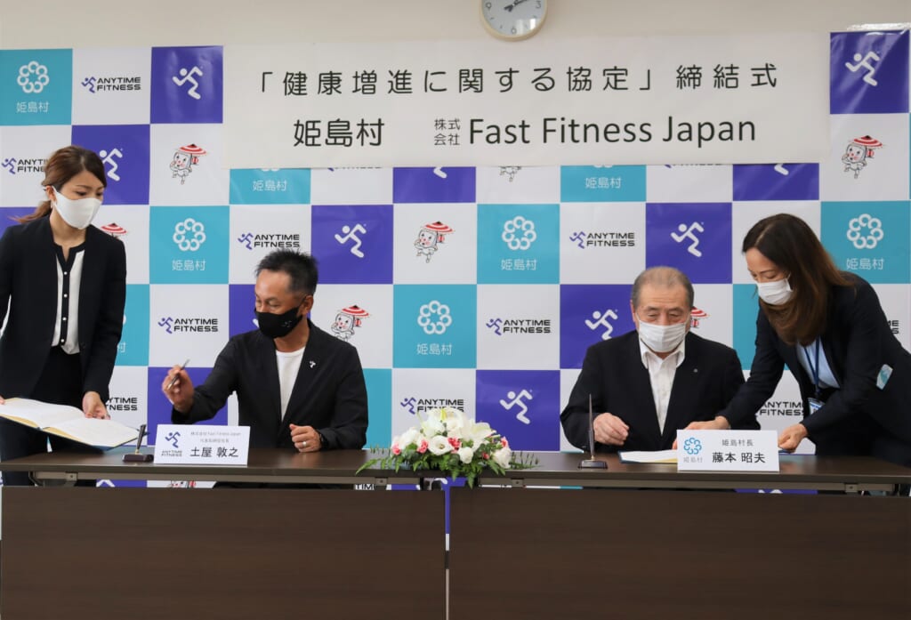 令和4年年10月5日(水)に、24時間年中無休のフィットネスジム「ANYTIME FITNESS(エニタイムフィットネス)」を展開する株式会社Fast Fitness Japan と「健康増進に関する協定」の締結式を行いました。