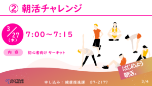 村民の方の健康づくりのために、軽スポーツセンターにて下記のとおりイベントを実施いたします。 当日は、エニタイムフィットネスのトレーナーがマシンの使い方等を指導してくれます。 皆様のご参加をお待ちしております!