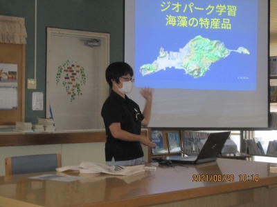 令和3年8月20日に、姫島中学校1年生が、姫島の特産品「姫島ひじき」のジオストーリーについて学習しました。